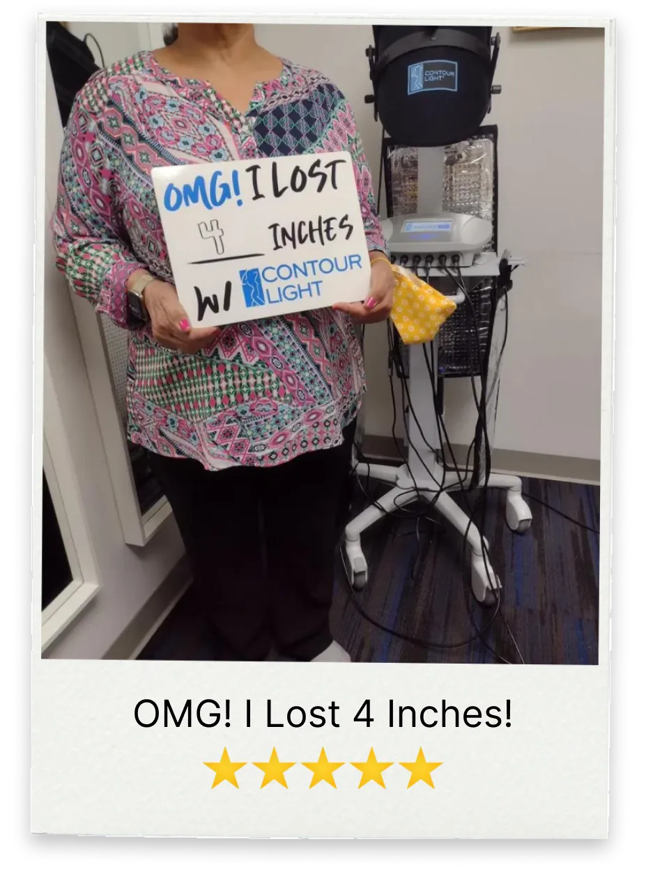 Most clients experience anywhere between 1-6+ INCHES lost in their very first Contour Light® Session. Results vary from person to person.